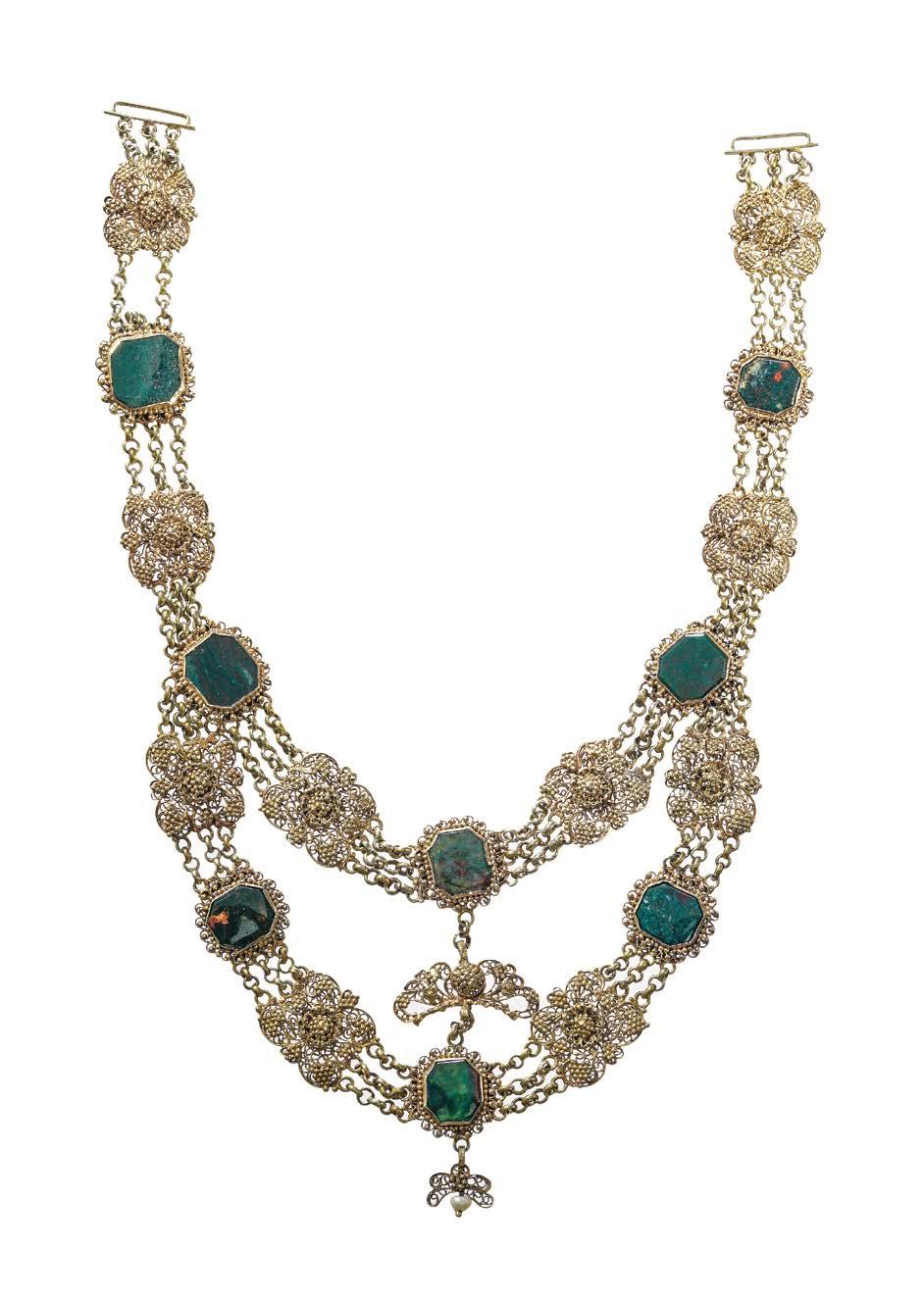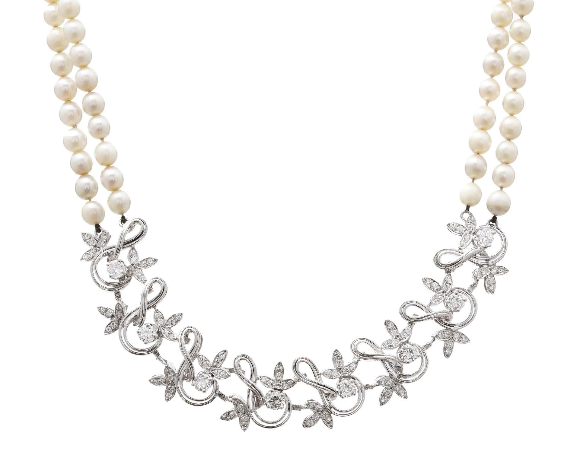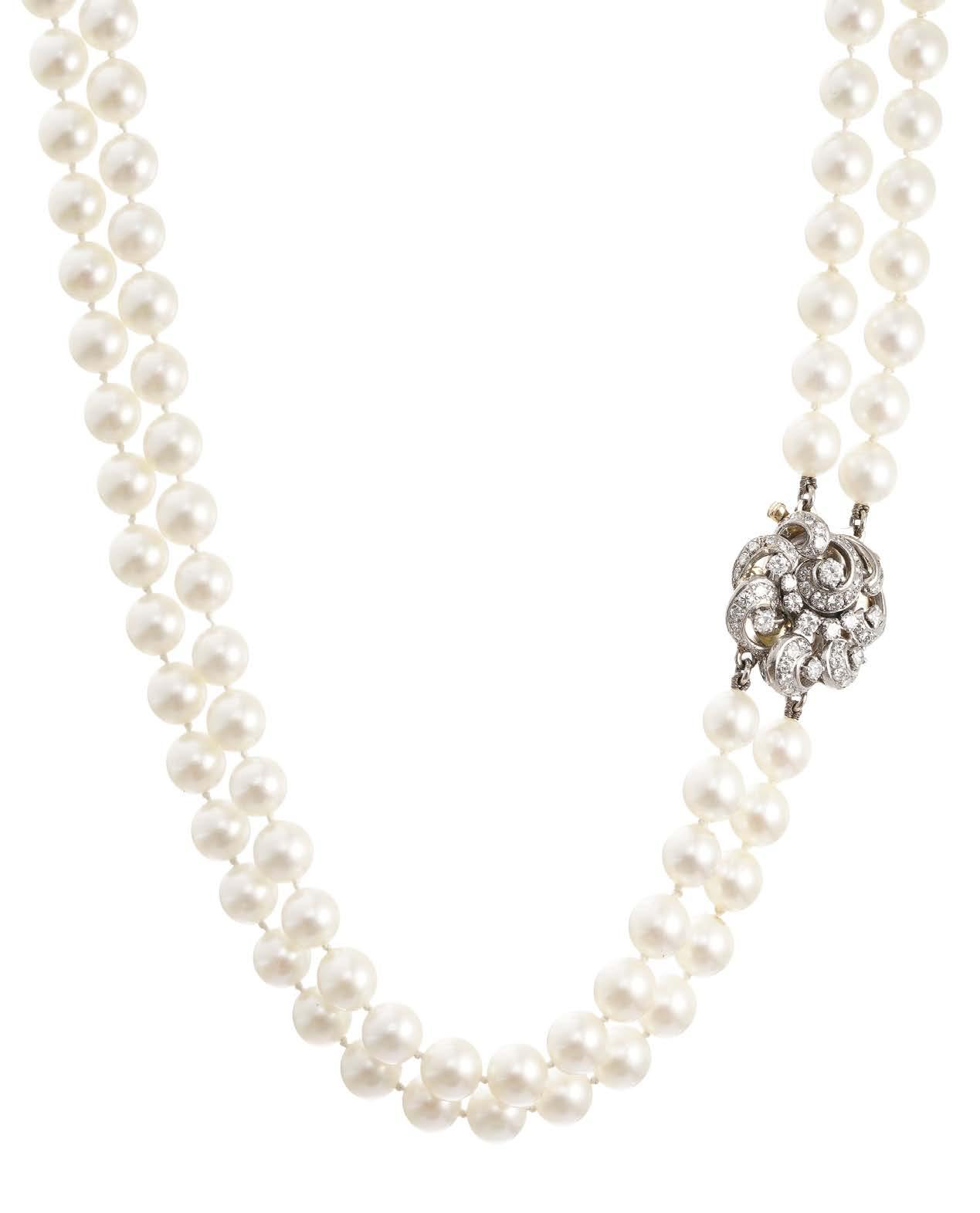 On joint une chaîne sertie de perles, or 750, L 166 cm, 27 g. 700/900
