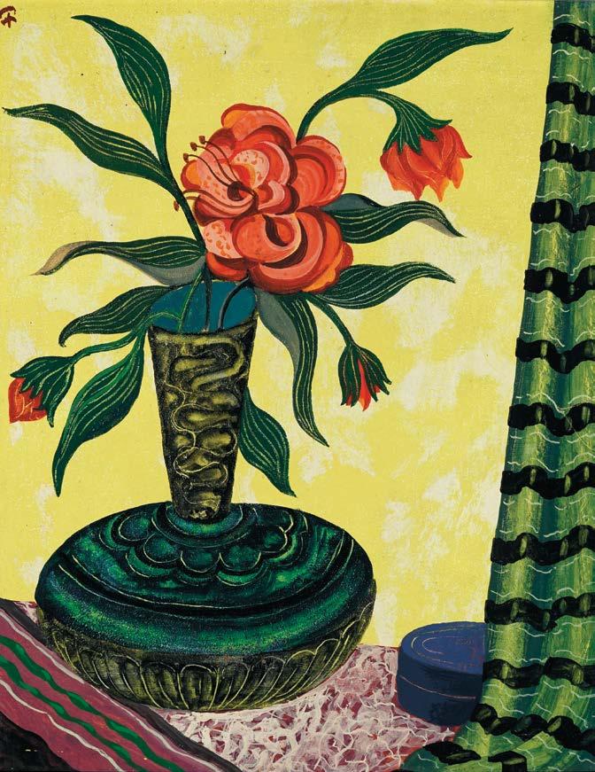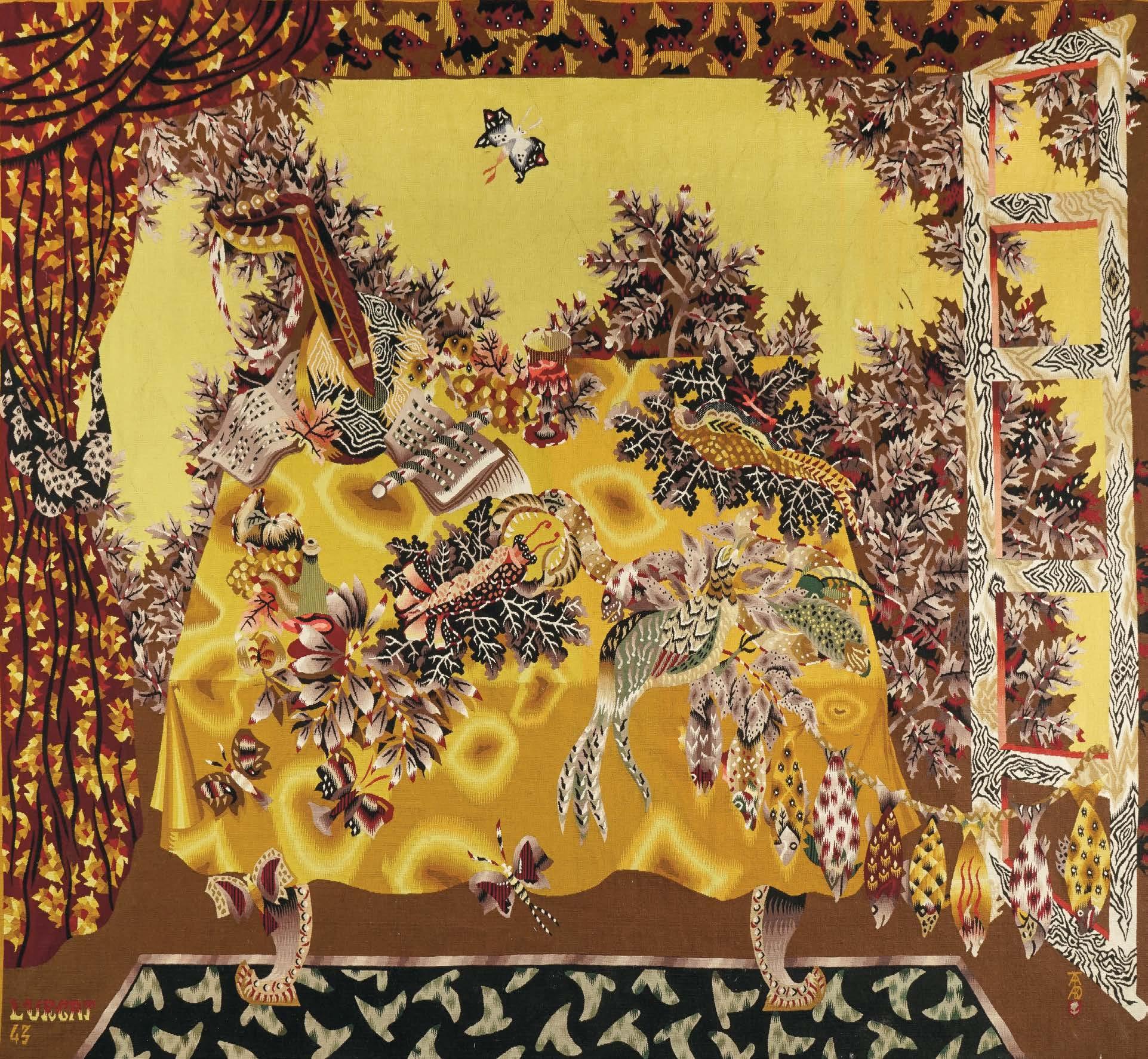 Nature morte au rideau (1943), tapisserie d’Aubusson, laine, tirage no 4, carton de Jean Lurçat, éditée par l’atelier Tabard Frères & Sœurs, signée sur le bolduc, 247 x 278 cm 5000/8000