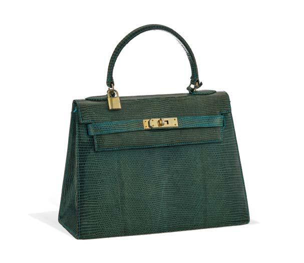 11. William Gurtner, sac façon Kelly Lézard vert, clé et cadenas, 21 x 28 cm 200/300