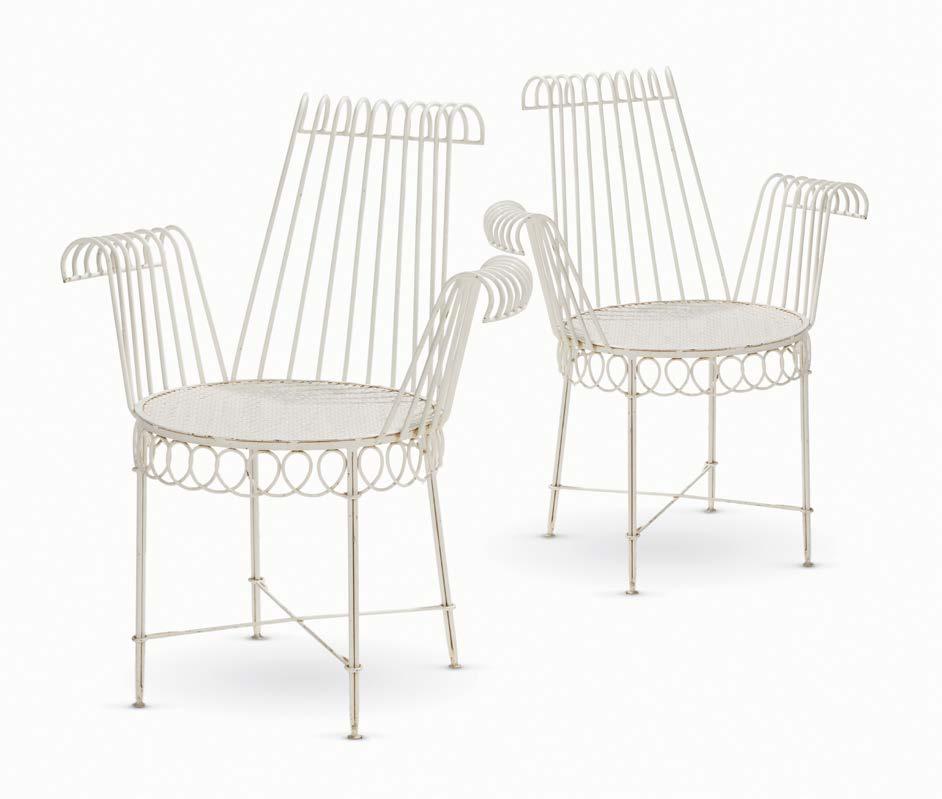 Ensemble de deux chaises et deux fauteuils, modèle Cap d’Ail, métal laqué blanc 1000/1500