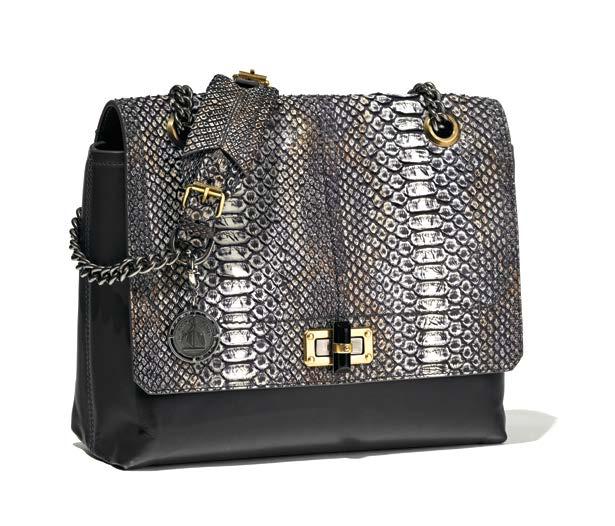 13. Lanvin, sac Happy Python et cuir gris, garniture en métal doré, anse bandoulière chaîne en métal argenté, 25 x 28 cm 400/600