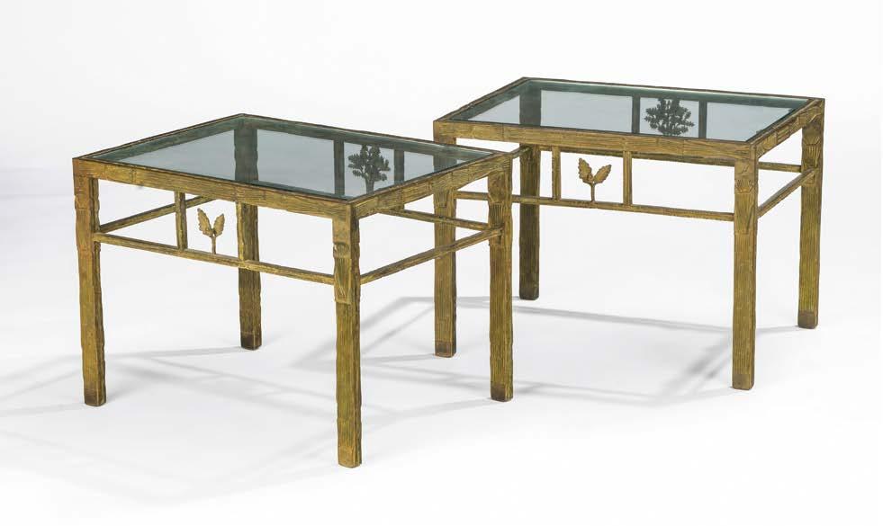 Piètement formé d’arcs affrontés, métal doré et verre, 42 x 120 x 81 cm 500/800