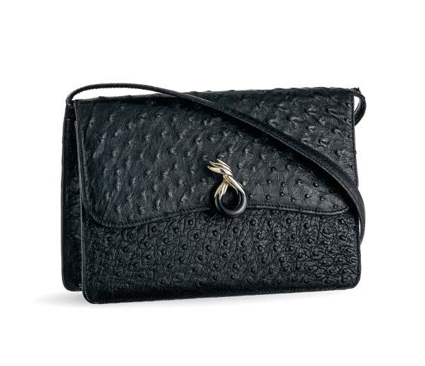 Autruche noir, bandoulière, fermoir en laiton doré et argenté et résine, 16 x 24 cm 300/500
