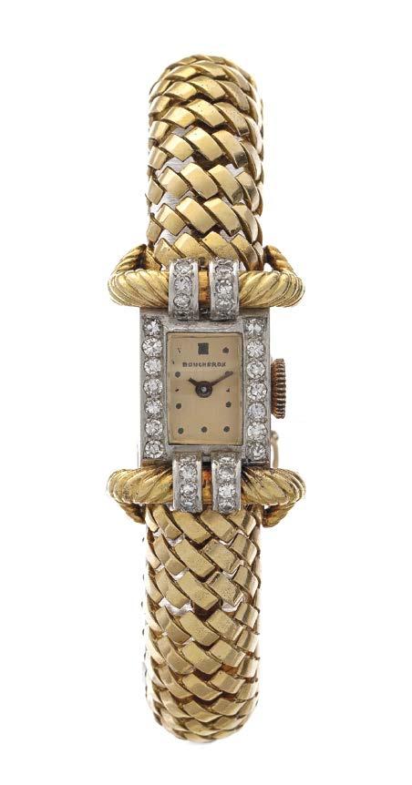 39. Boucheron, montre bracelet rectangulaire mécanique sertie de diamants