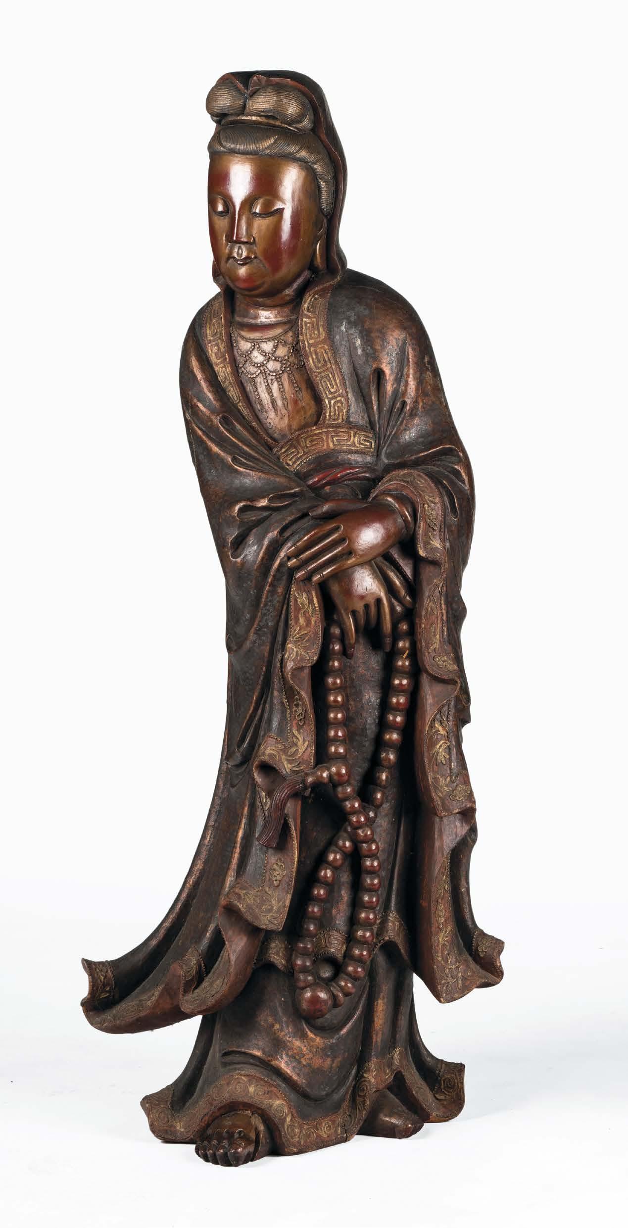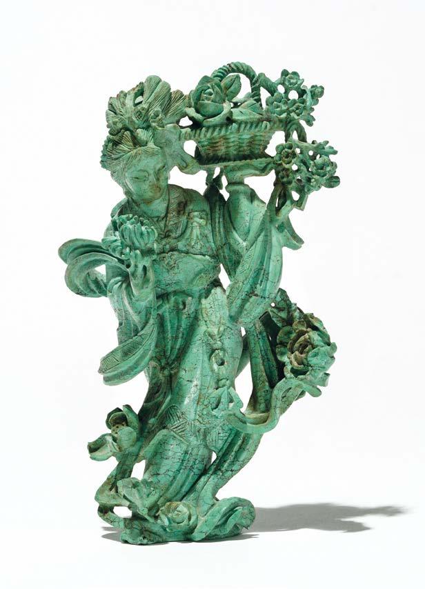 41. Kwanyn au panier fleuri, Chine Turquoise sculptée, H 18 cm 300/500