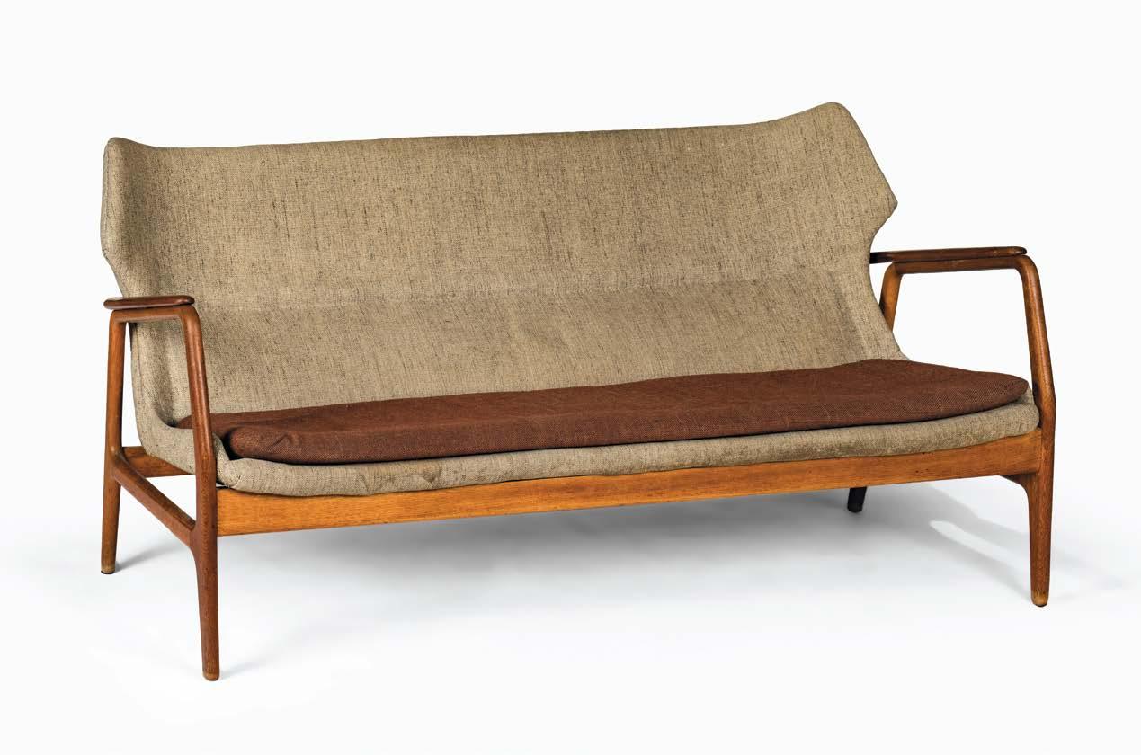1189. Aksel Bender-Madsen (1916-2000), édition Bovenkamp Canapé, tissu beige, bois naturel, L 166 cm 500/800