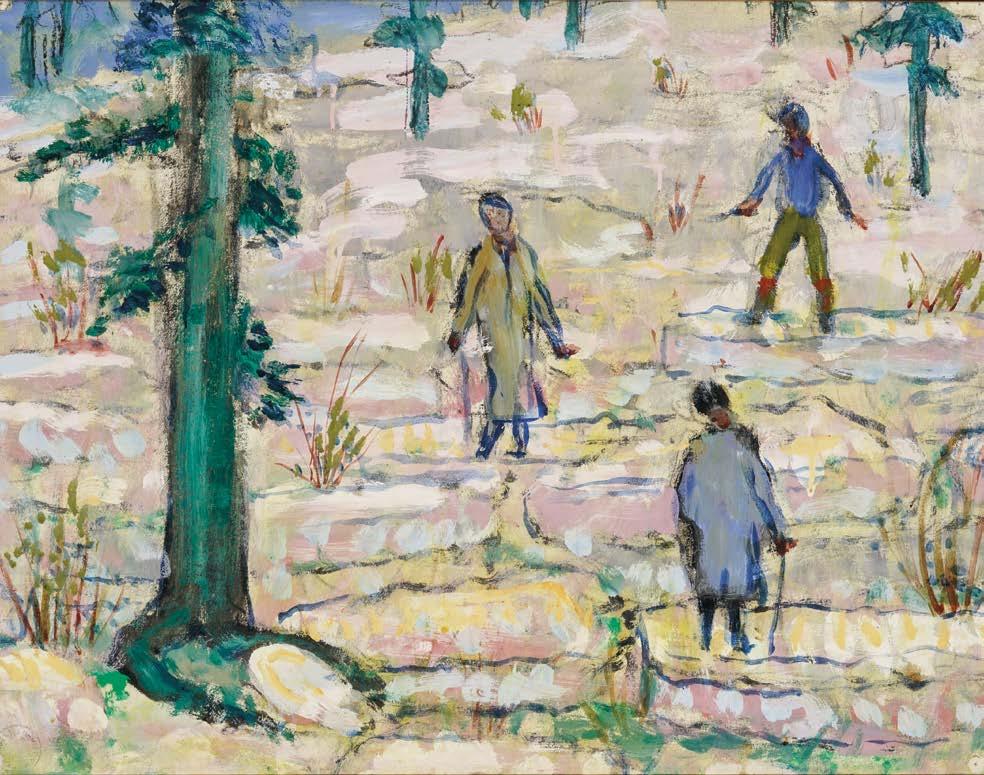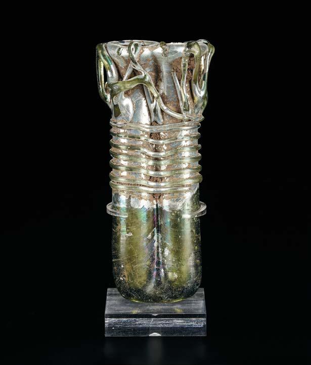 Verre à décor de scène lacustre et d’enfants, H 6 cm 300/500