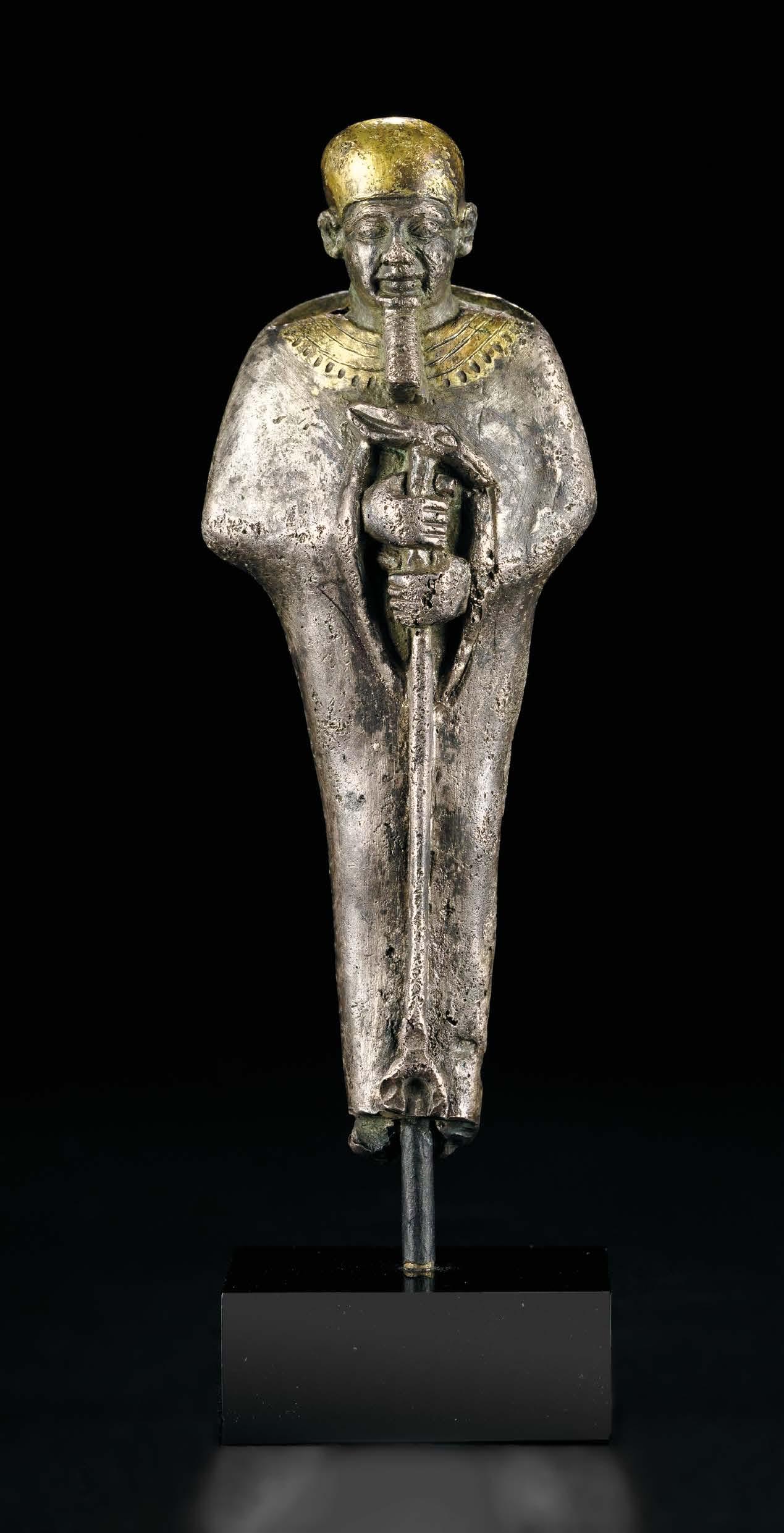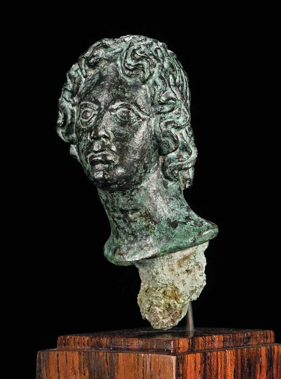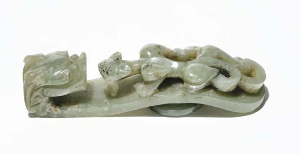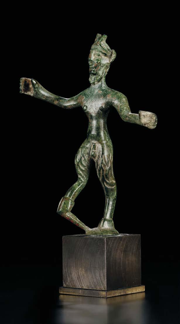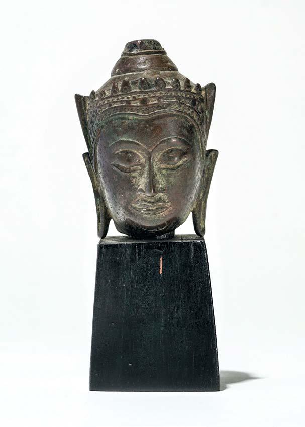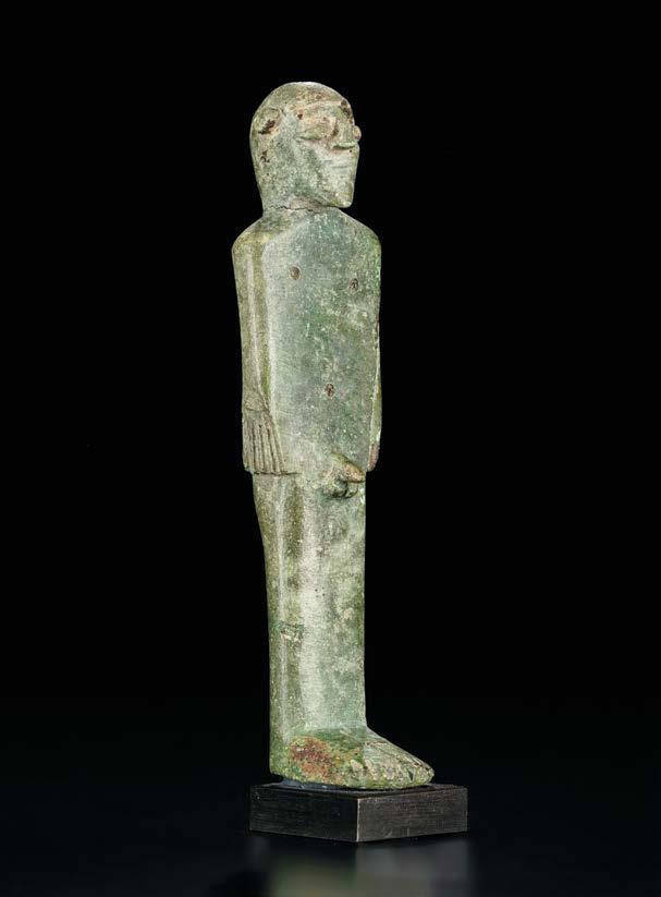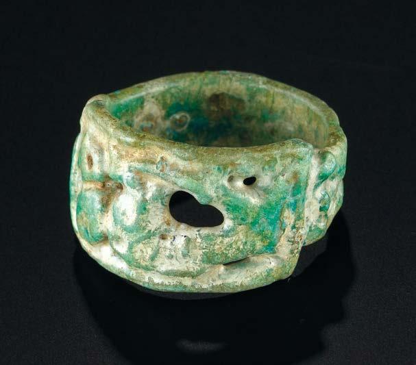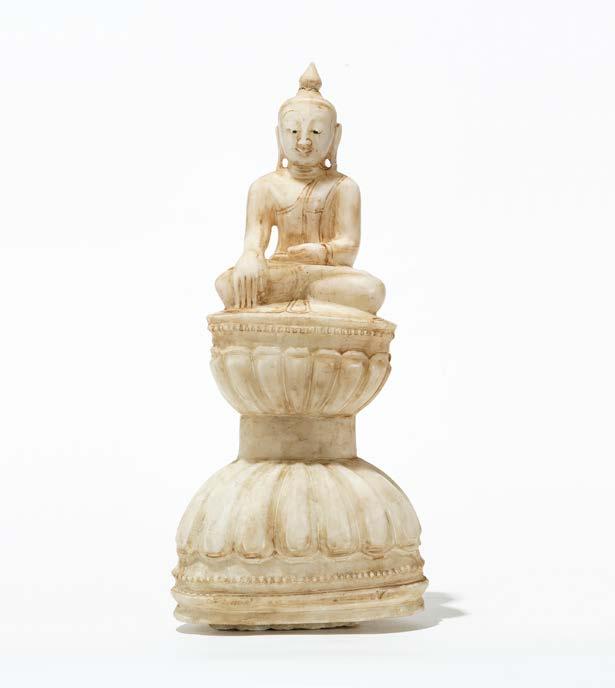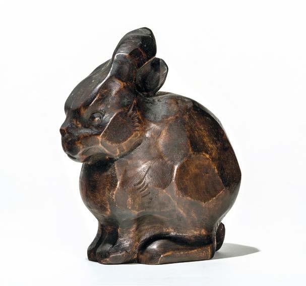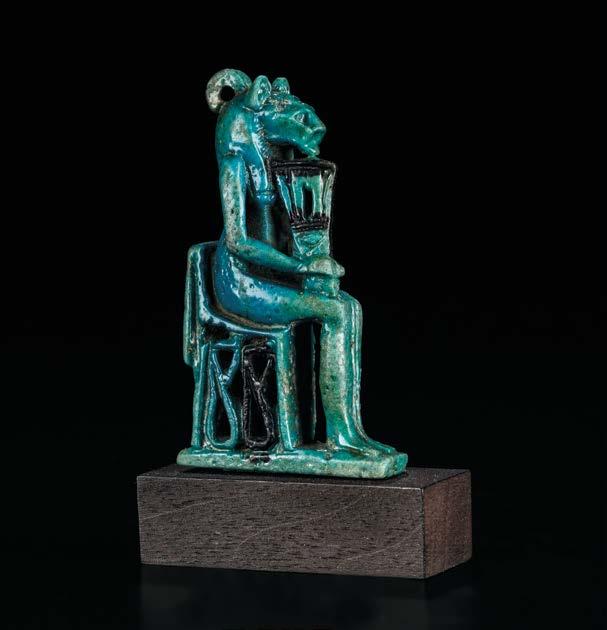 Terre cuite émaillée céladon, présenté sur un trône en bois noirci, collection Joseph Hartl, H 11.5 cm 300/500