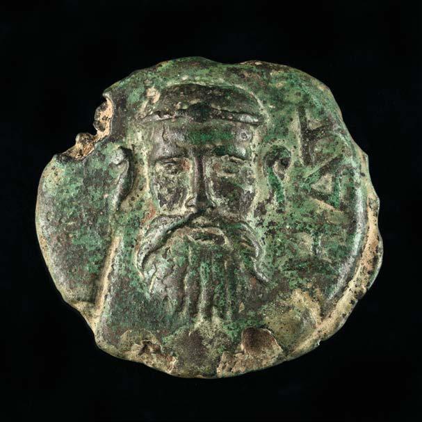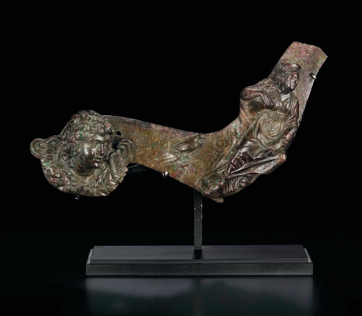 29. Tête de génie, Chine, dynastie Ming (1368-1644) Céramique à glaçure sancai, H 29 cm 500/600
