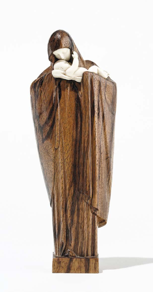 Vierge à l’enfant, ébène de macassar et ivoire, H 22 cm 300/500