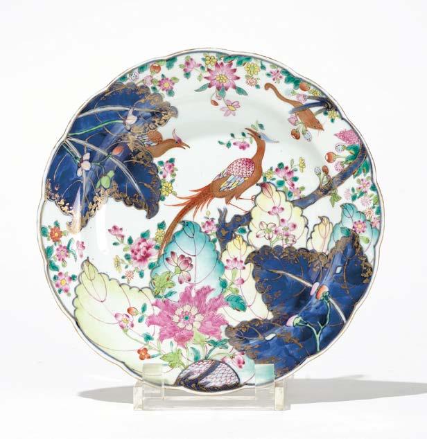 17. Plat famille rose, Chine, XIX-XXe s Porcelaine émaillée polychrome et dorée à décor d’un phénix et de fleurs, D 23.5 cm 300/500