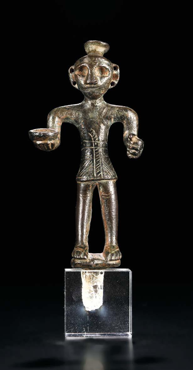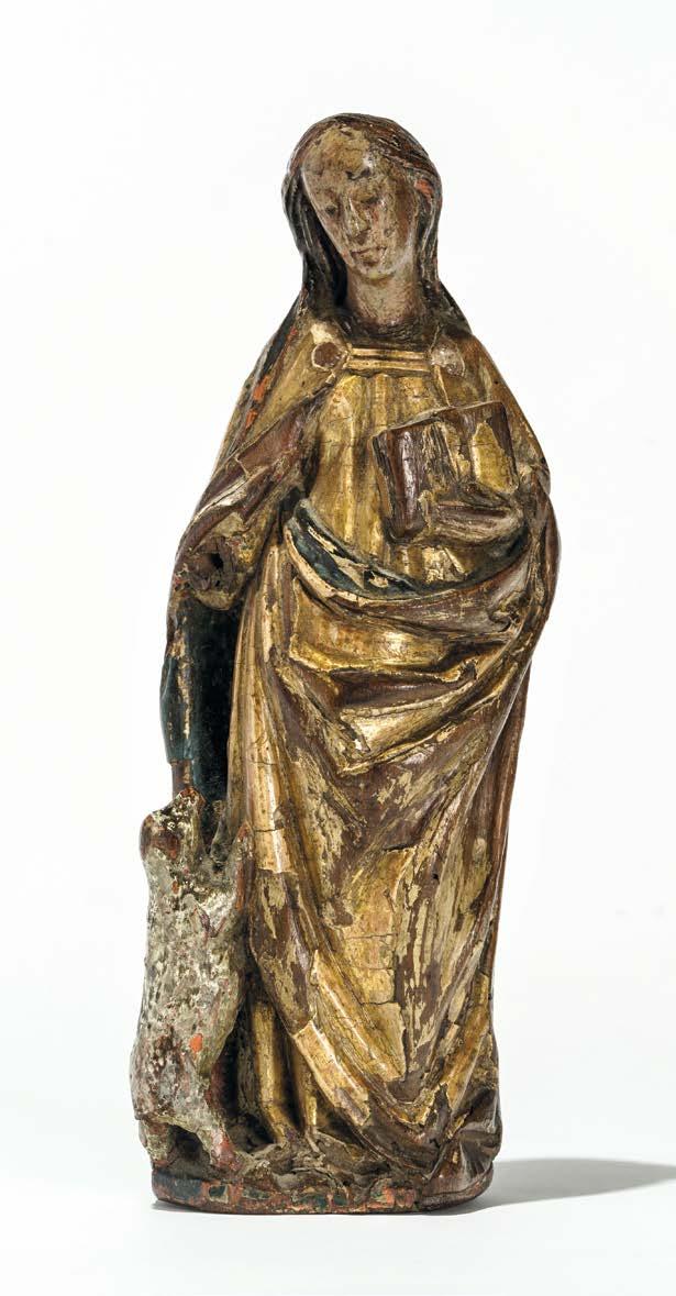 Terre crue et fibres naturelles, ancienne polychromie, H 29 cm 600/800