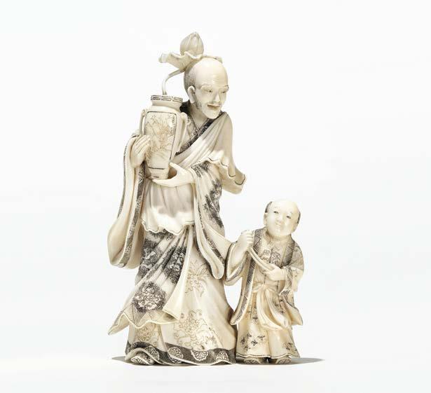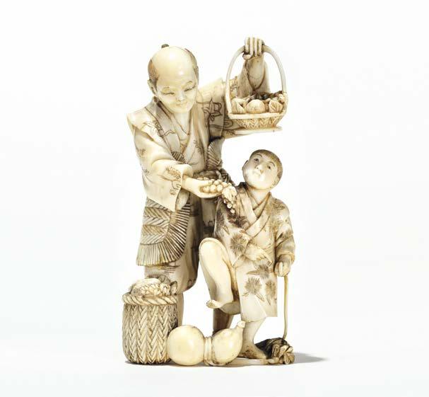 39. Vieux pêcheur aux nombreuses carpes, Chine Corail sculpté, H 23 cm, 299 g 1000/1500