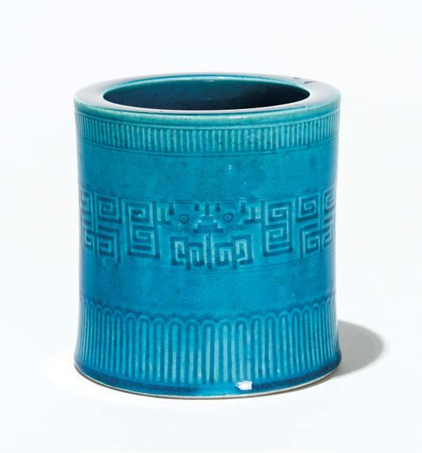 Porcelaine à glaçure turquoise, marque en creux apocryphe de Kangxi, H 13 cm 300/500