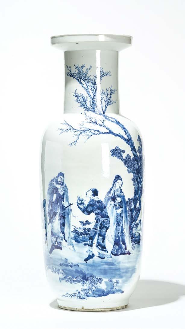Porcelaine à décor bleu blanc de personnages, H 62 cm 300/500