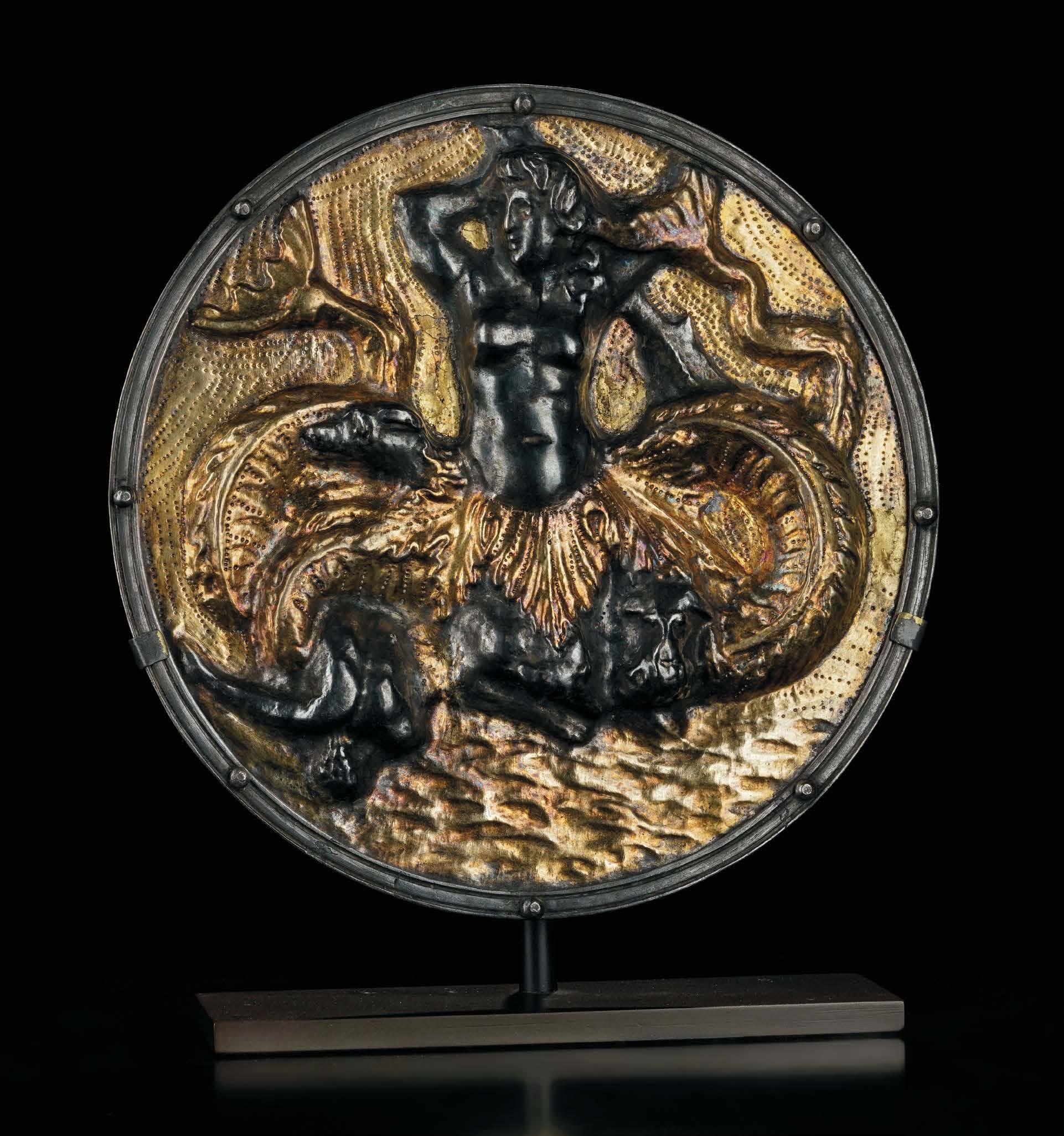 Médaille Dionysos et Pallas Athena, argent 925, signée et datée 1966, 380 g, D 8 cm 300/500
