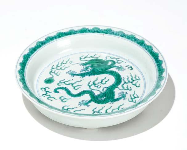 Porcelaine émaillée blanc à décor de dragon vert, D 27 cm 1000/1500