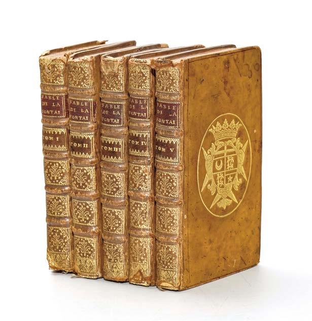 31. FOUQUET (Nicolas). Les Œuvres de M. Fouquet, Ministre d’Etat. Contenant son Accusation, son Procez et ses Défenses, contre Louis XIV, Roy de France. Paris, chez la Veuve de Cramoisy, 1696. 16 tomes en 8 volumes in-12, veau blond jaspé, dos à nerfs très ornés, triple filet doré sur les plats, tranches dorées. Reliure pastiche réalisée au XIXe s. Il s’agit de l’édition complète du compte-rendu du procès de Nicolas Fouquet, le Surintendant des Finances du jeune Louis XIV. La première édition avait été donnée par les Elzevier en 1665-1667. Ce fut la défense de Fou quet, donnée par ses amis et défen seurs, parmi lesquels on rencontre, parmi les plus acharnés, Pellisson, La Fontaine, la marquise de Sévigné, Saint-Evremond. Mais Colbert sut les neutraliser avec le talent qui lui fut reproché. Le Traité du Péculat est ici en première édition (tome I), ainsi que le Factum (tome II). Willems, 1361. 600/800