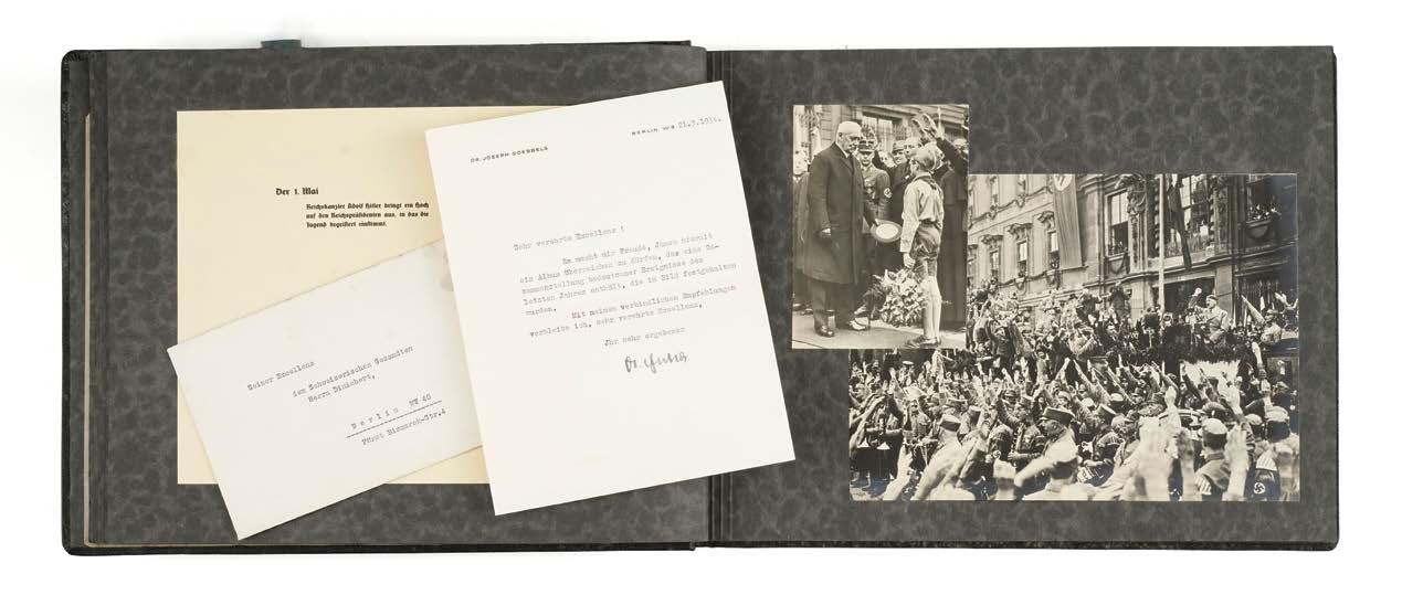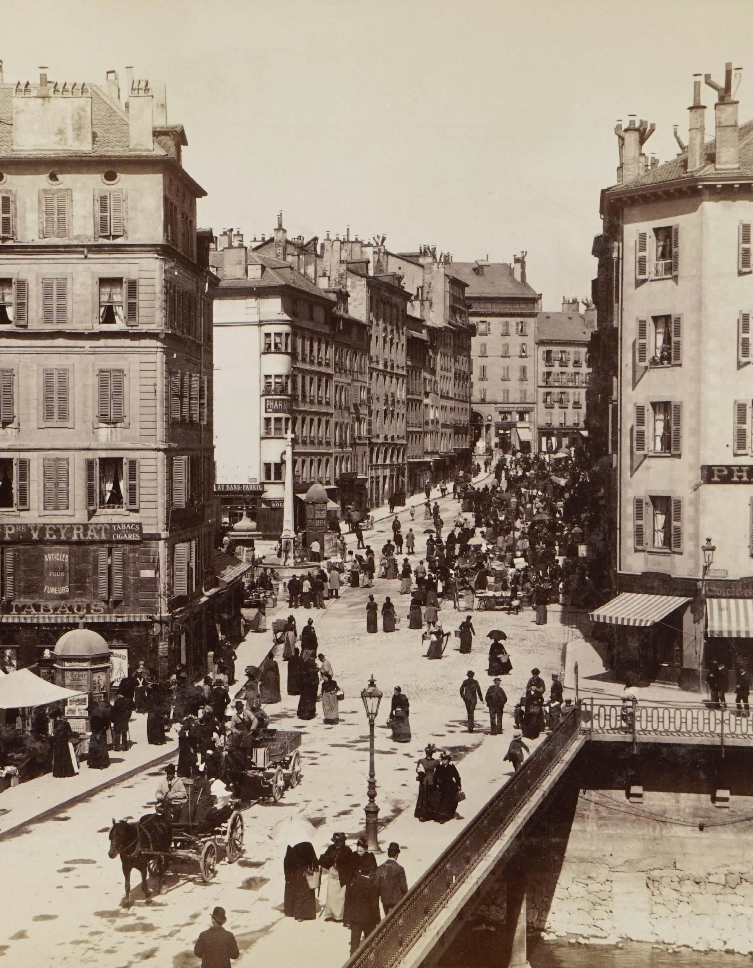 3. Important album constitué de 370 photographies de la ville et de ses environs, de cartes et plans. In-4°, oblong, demi-chagrin brun. Epoque de la fin du XIXe s. On joint un bel album d’environ 270 cartes postales des années 1900-1915, représentant toutes des vues de rues, animées ou non, de la ville de Genève, de monuments, du Rhône à sec, d’un dimanche à Plainpalais. 400/600