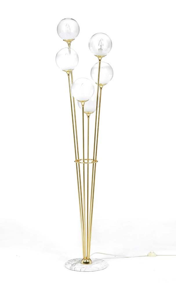 1240. Lampadaire Stilnovo, Italie, circa 1950 Six lumières, laiton, opaline et, H 170 cm 500/800