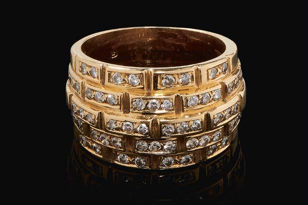1124. Vacheron Constantin, bague à motif de maille gourmette entrelacée rehaussée de part et d’autre d’un pavage de diamants Or 750, doigt 52-12, 21 g 500/700