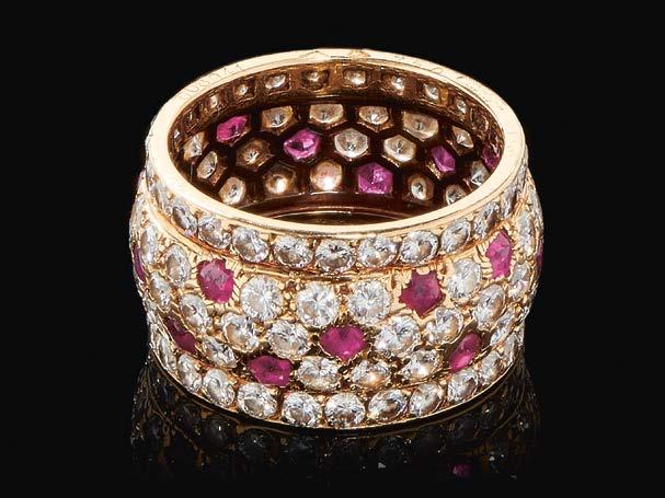 1114. Cartier, Nigeria, bague bandeau pavée de diamants (4.79 ct) et de rubis en cabochon (1.14 ct)