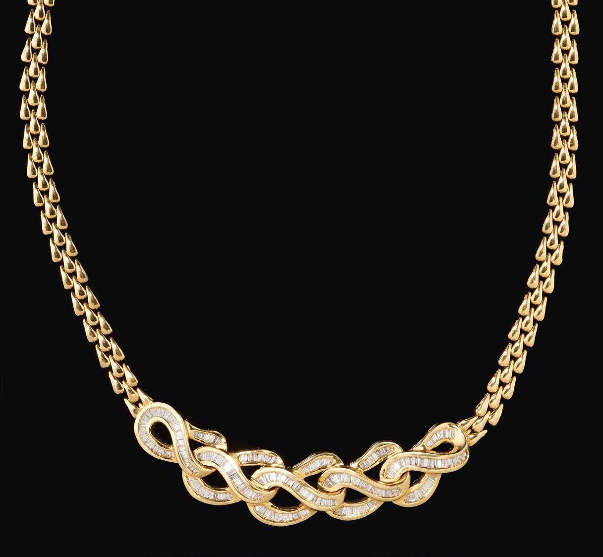 1106. Collier à motif d’entrelacs serti de diamants baguette (env. 1 ct)