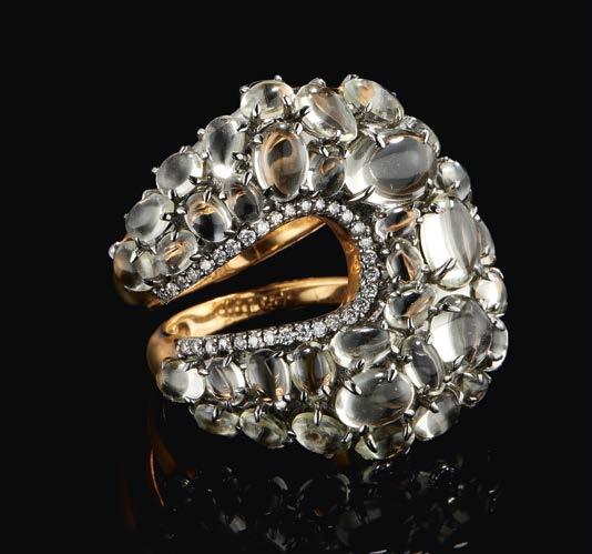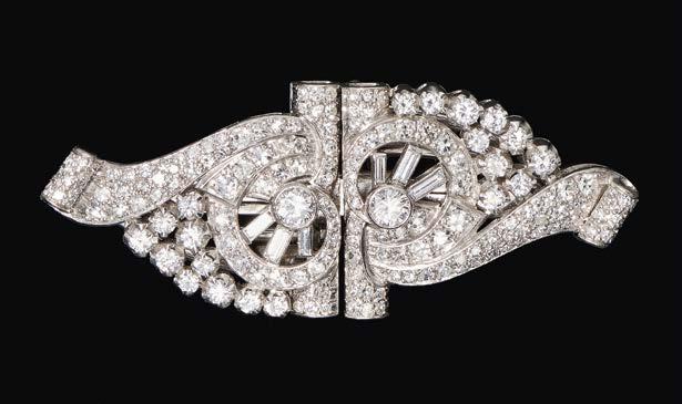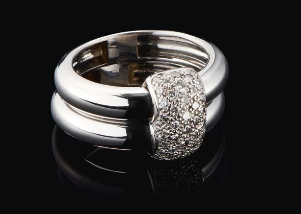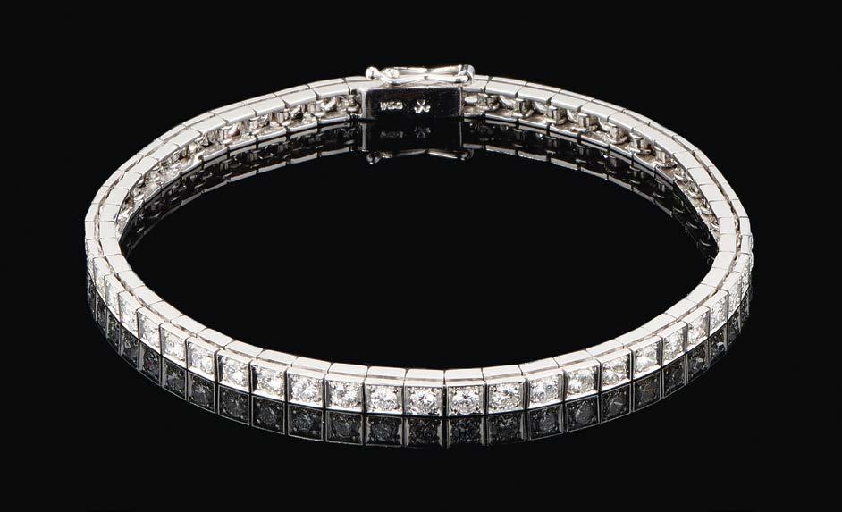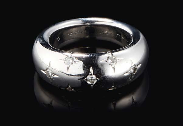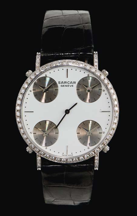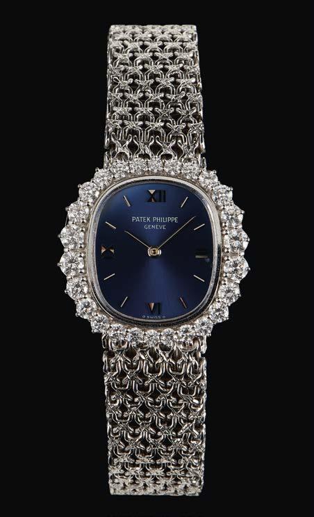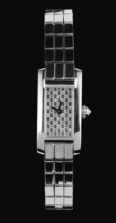 Cadran crème monogrammé et serti de diamants, aiguilles argentées, remontoir serti d’un diamant, or gris 750, L 18 cm, 20 x 15 mm, poids brut 78 g 2000/3000