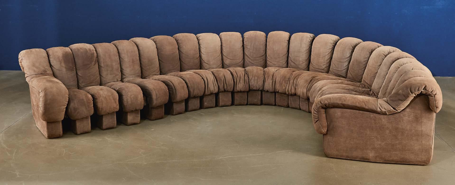 1167. Eleanore PeduzziUli Berger - Klaus Vogdt - Riva Heinz Ulrich, éditeur De Sede Canapé modulable de 22 éléments, modèle « DS-600 » dit Non stopcréation 1972, cuir brun 4000/6000