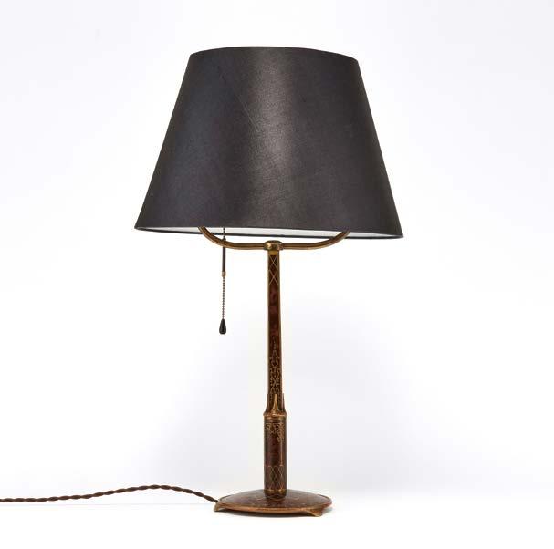 Toile enduite monogrammée, métal doré, H 37 cm 150/200