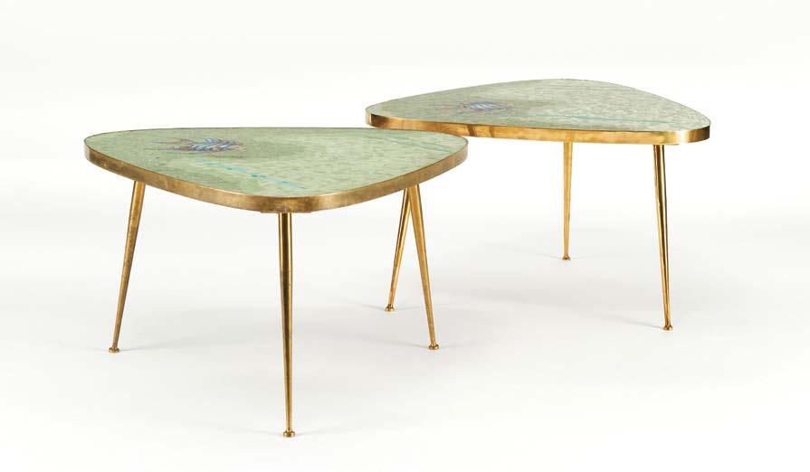 1187. Trois tables basses César Mod. A Composite laqué, H 45 cm. Provenance : Teo Jakob, Genève. 400/600
