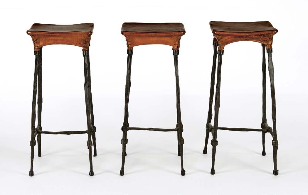 Cuir, bois et aluminium, 115 x 155 x 75 cm 400/600