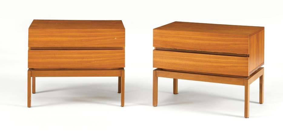 1168. Florence Knoll (1917-2019) Bout de canapé rectangulaire, placage de bois fruitier et métal chromé, 60 x 68 x 46 cm 150/200