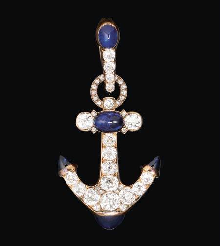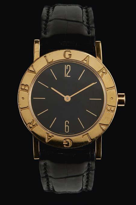 Cadran crème, aiguilles bleues et chiffres romains noirs, date à guichet à 3 h, remontoir serti d’un saphir cabochon, or et acier, D 30 mm 400/600