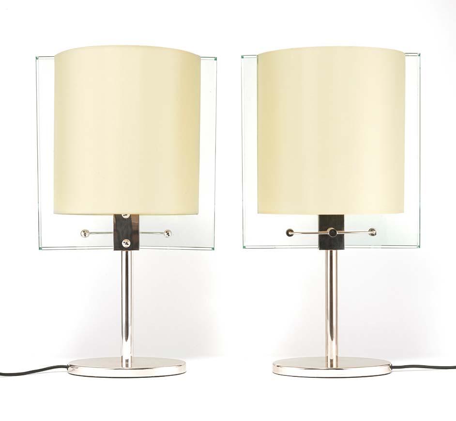 Paire de bouts de canapé modernistes, inox brossé et verre fumé, 1970, 51 x 75 x 50 cm 300/500
