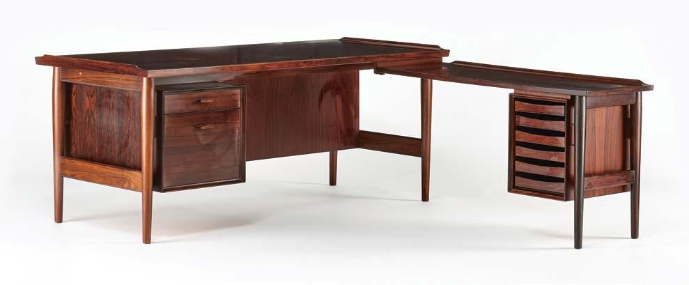 Bureau double face et son retour d’angle formant buffet de rangement, palissandre, édition Sibast, circa 1960, 72 x 178 x 79 cm 1000/1500