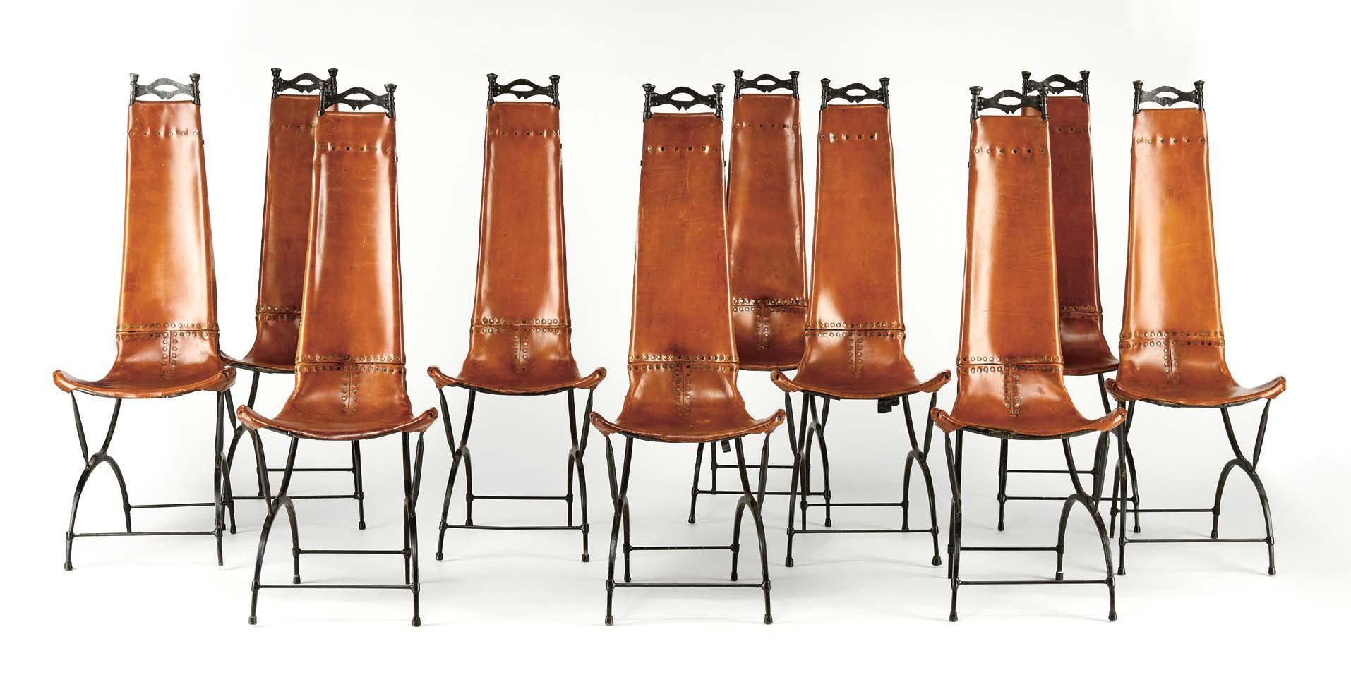 Ensemble Swan comprenant une paire de canapés et trois fauteuils, cuir vert et aluminium. Provenance : Teo Jakob, Genève. 1200/1800