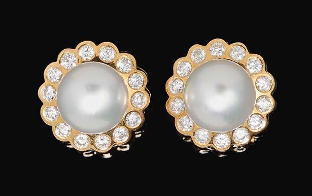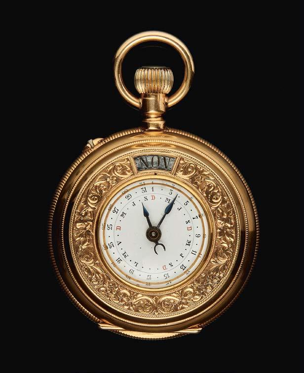 Cadran nacré, aiguilles dorées, index à points sertis de diamants, or 750, D 25 mm, poids brut 74 g 1500/2000
