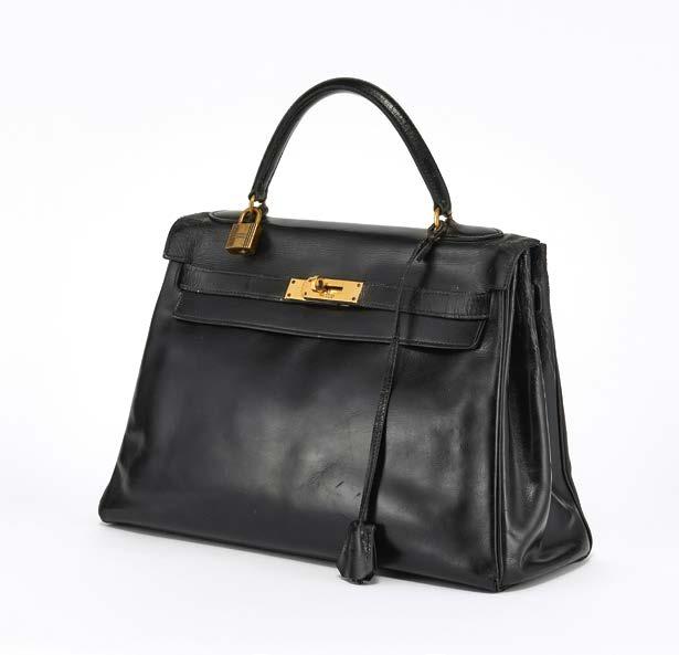 Cuir lisse noir, garniture en métal doré, 23 x 35 x 13 cm 300/500