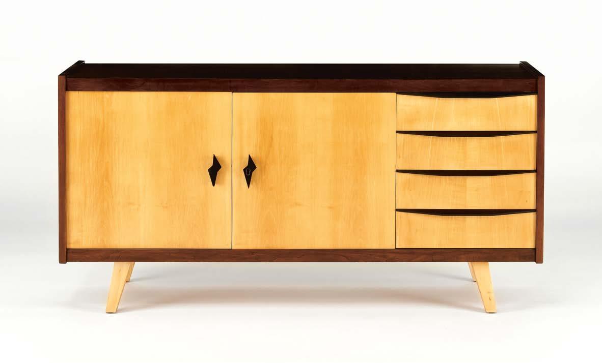 Deux vantaux et quatre tiroirs, placage de noyer et d’érable, 165 x 84 x 49 cm 200/300