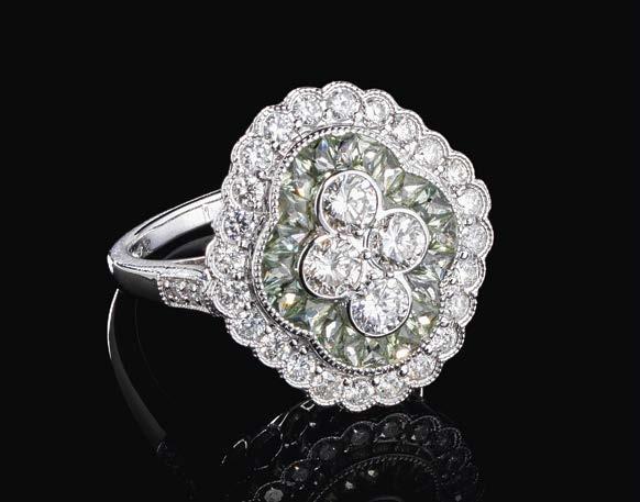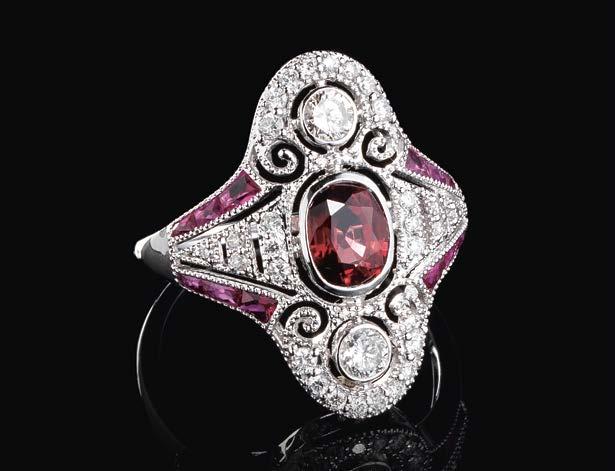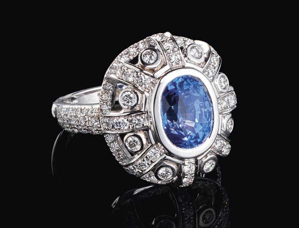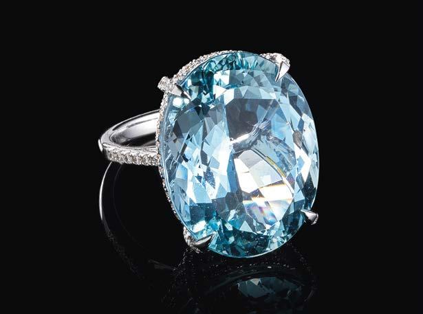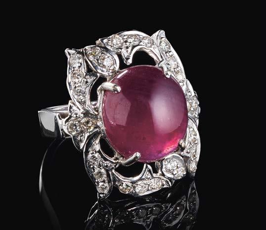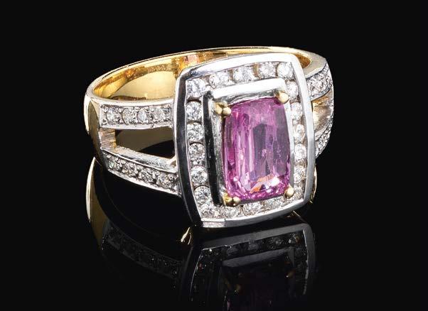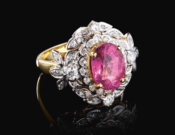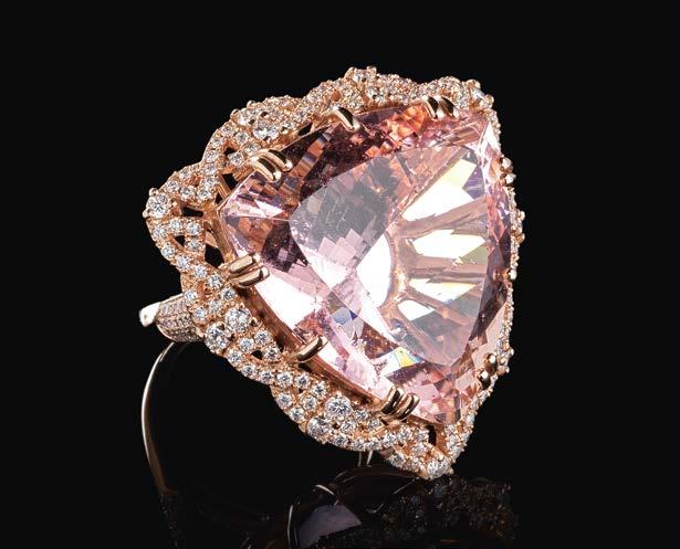 36. Bague sertie d’une kunzite taille troïda (40.92 ct) sur une monture ajourée pavée de diamants (1.6 ct)