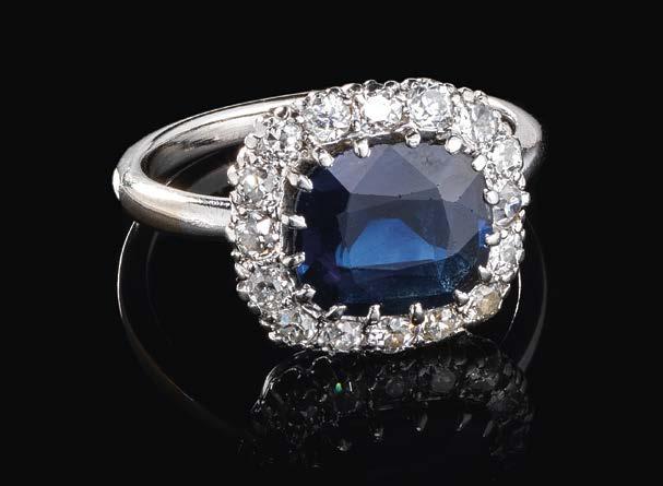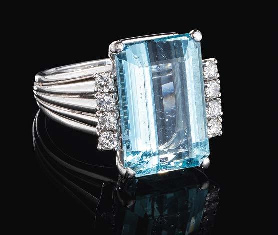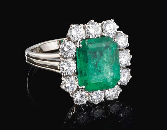 41. *Bague sertie d’une émeraude taille émeraude (env. 8.5 ct) entourée de diamants sur une monture