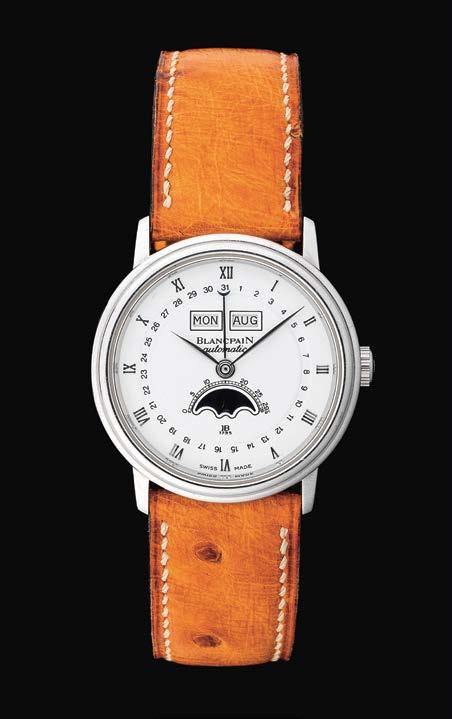 10. Blancpain, Villeret, montre ronde automatique à calendrier annuel Cadran blanc, aiguilles et chiffres romains argentés, phases de la Lune à 6 h, acier, D 34 mm 800/1200