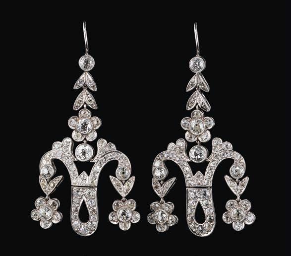 23. * Boucles d’oreilles girandole à motif floral pavées de diamants (env. 4 ct)
