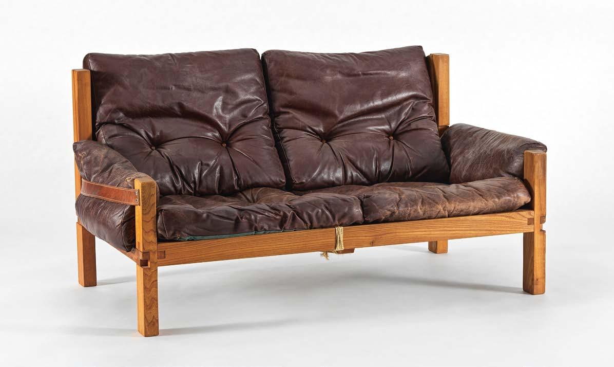 Bois et cuir piqué sellier, L 140 cm 1500/2000