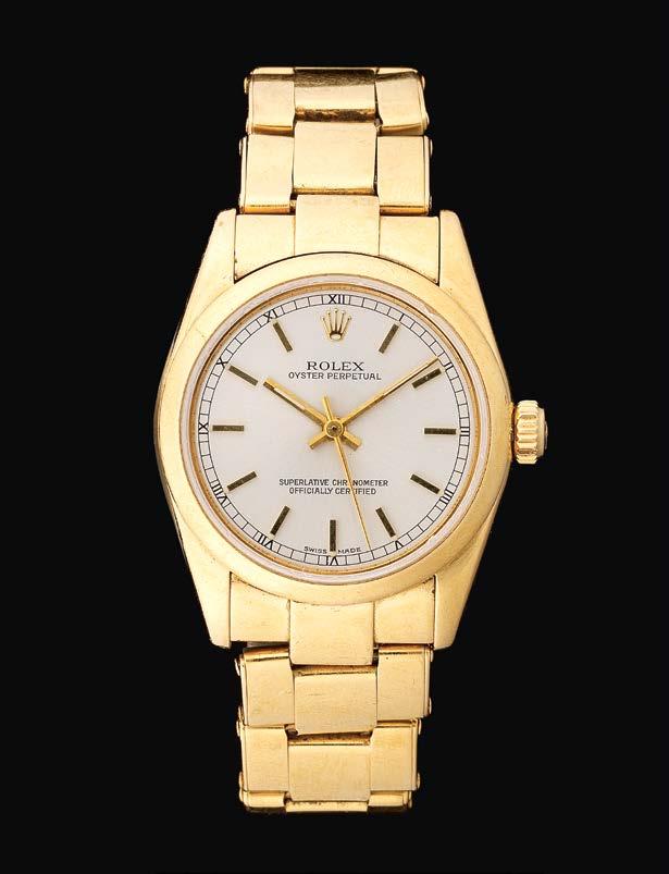 14. *Rolex, Oyster Perpetual, montre-bracelet ronde automatique Cadran argenté, aiguilles et index bâtons dorés, réf. 67488, or 750, D 30 mm, poids brut 84 g 4500/5500