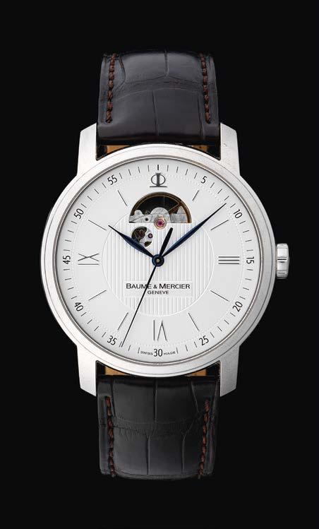 8. Baume & Mercier, Classima, montre ronde automatique Cadran et chiffres romains argentés, aiguilles bleuies, ouverture à 12 h laissant apparaître le mouvement, acier, D 42 mm 600/800