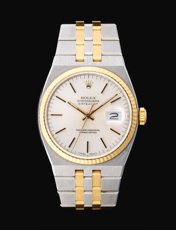 15. Rolex, Oysterquartz Datejust, montre-bracelet ronde à quartz Cadran argenté, aiguilles et index bâtons dorés, date à guichet à 3 h, réf. 17013, début des années 90, acier et or 750, D 36 mm 2000/3000