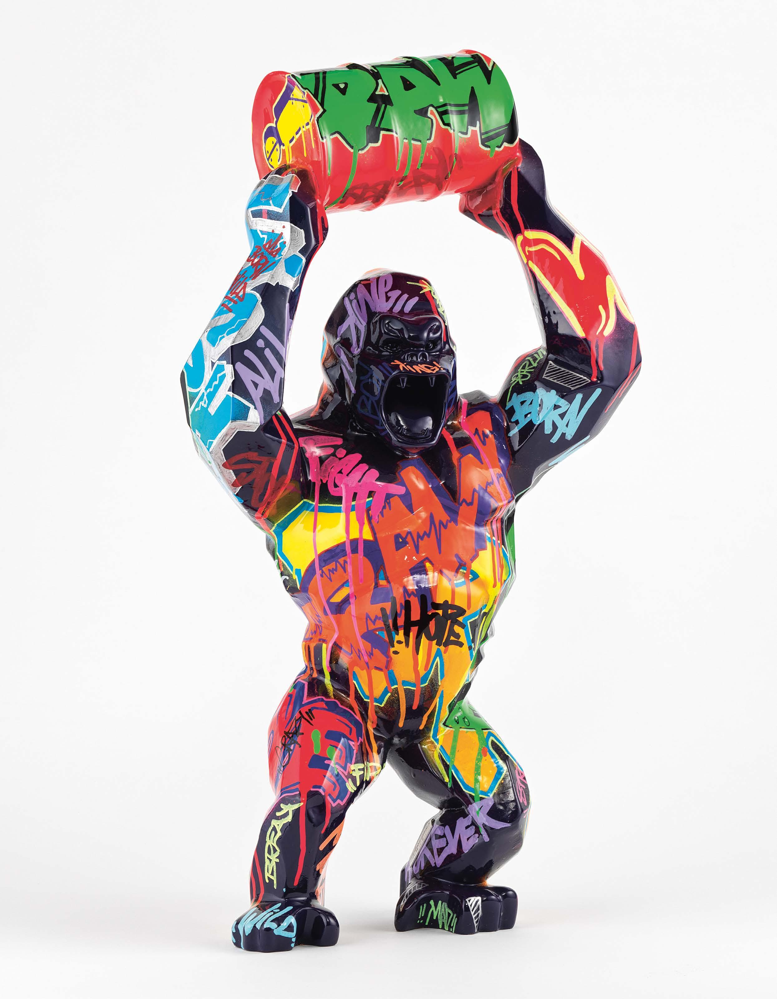 Kong au tonneau, résine peinte, signé, numéro 1/1, H 70 cm 12’000/15’000