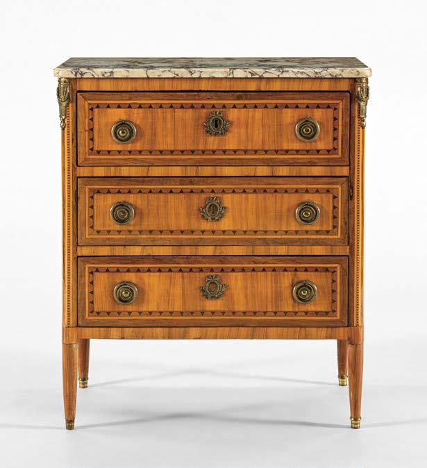 Bois de placage marqueté en losanges, laiton, numérotée 30303, 65 x 84 x 49 cm 1000/1500
